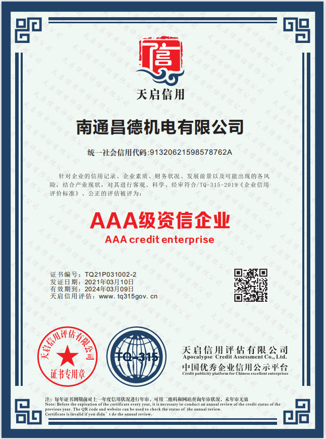 | 上一篇:AAA誠信經營示范單位 下一篇:AAA級信用企業 |