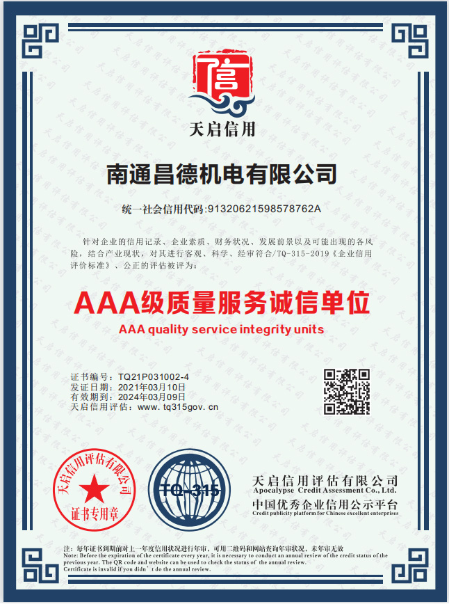 | 上一篇:AAA級重服務守信用企業 下一篇:AAA誠信經營示范單位 |